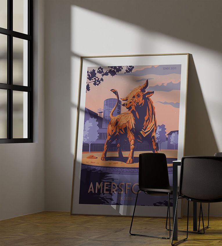 - Carteles impresos a mano con escenas emblemáticas de Amersfoort