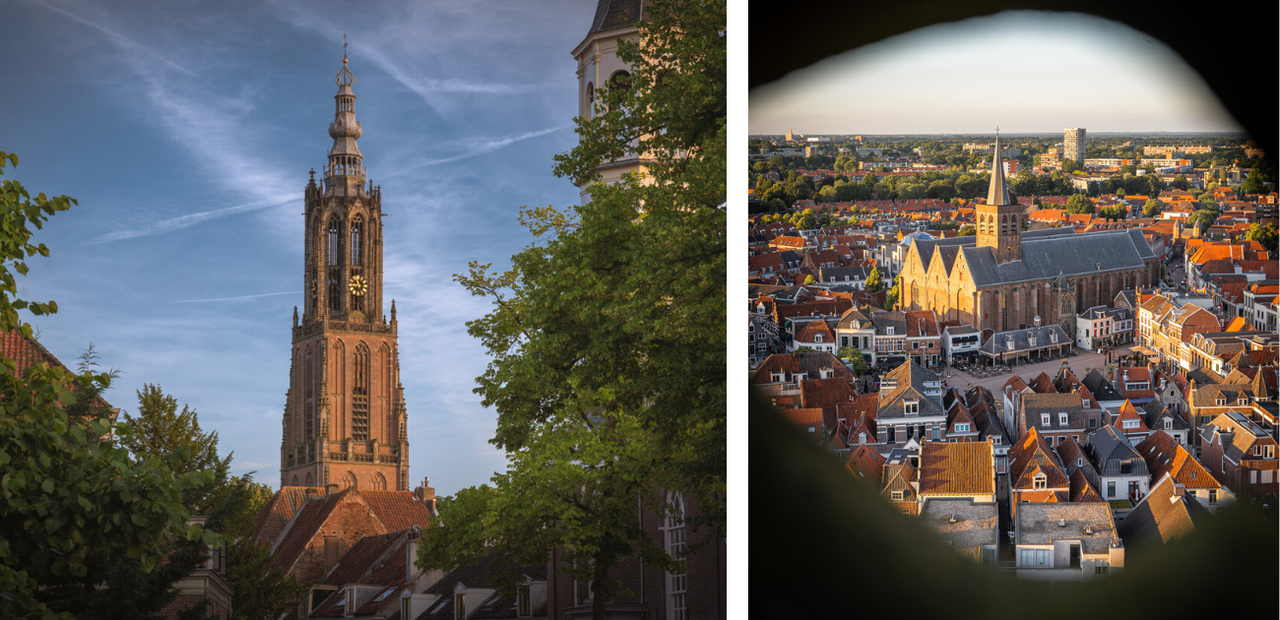 Bezoek je Amersfoort, dan mag de Lieve Vrouwetoren — of Lange Jan — niet ontbreken. Bovenin vind je niet alleen een prachtig uitzicht, maar ook het kadastrale middelpunt van Nederland. Ooit stond hier de Onze Lieve Vrouwekerk, die in 1787 ontplofte door opgeslagen buskruit. Wat overbleef, werd later het Lieve Vrouwekerkhof. De contouren van de oude kerk zijn nog altijd zichtbaar in de bestrating. Wie durft, kan de toren beklimmen en zo genieten van het mooiste uitzicht over de stad. Lijkt je dit leuk? Klik hier