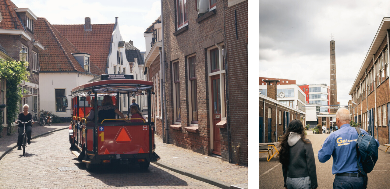 Vlak voor de Lieve Vrouwetoren stap je op het lokale boemeltreintje, de Keijlijn, die je in ongeveer een uur langs de hoogtepunten van Amersfoort brengt. Met het Hop-On-Hop-Off principe kun je onderweg overal in- en uitstappen, terwijl de conducteur vertelt over de binnenstad.