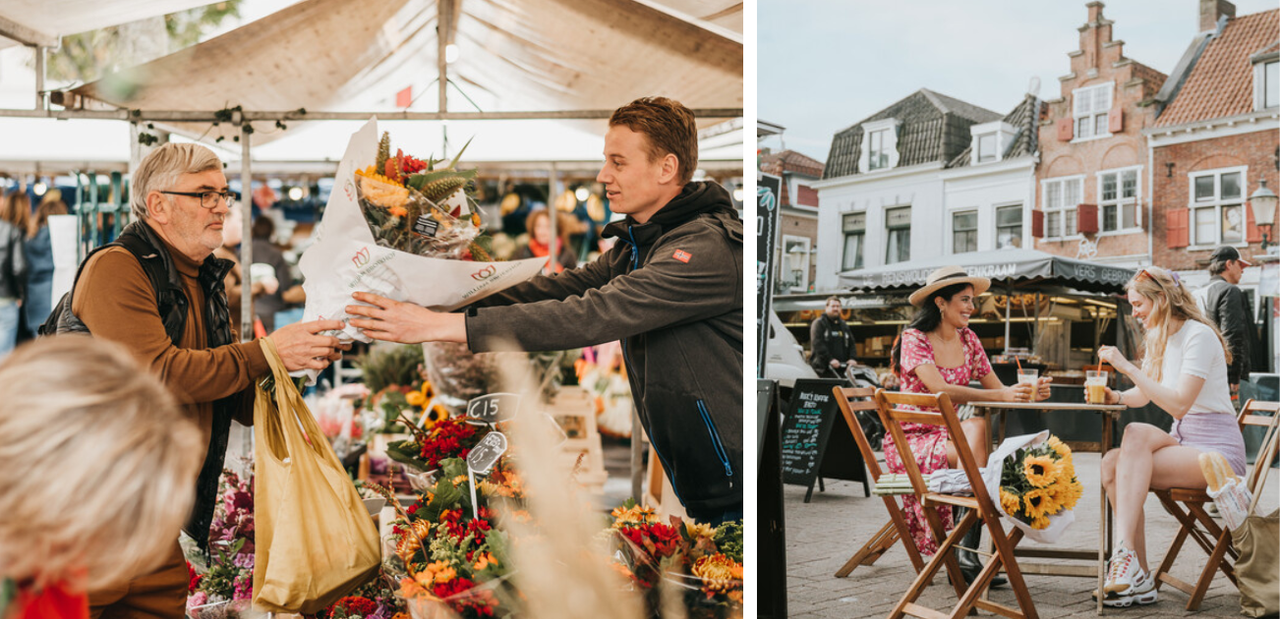 Een bezoek aan een markt geeft je een kijkje in het dagelijkse leven in Nederland. De Hofmarkt op vrijdag en zaterdag bruist van energie: de lokale bevolking komt hier voor vers brood, bloemen, Nederlandse kaas en warme stroopwafels.