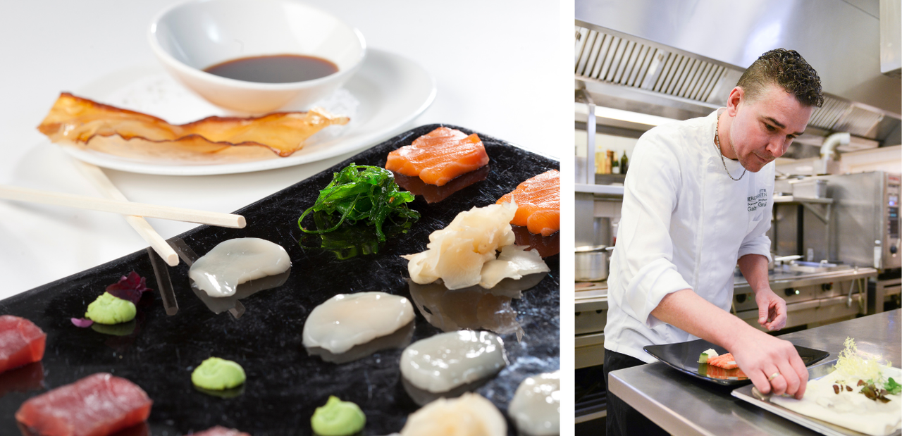 Ook Het Bergpaviljoen heeft veel visgerechten op het menu staan. Een doosje oesters uit Yerseke, inclusief oestermesje voor de echte liefhebber. Verschillende 3 gangen menu’s waarbij vis de hoofdrol speelt of een truffelrisotto Bistronomique met coquille, langoustine en Jamón Resèrva Batallé (traditioneel bereidde ham).