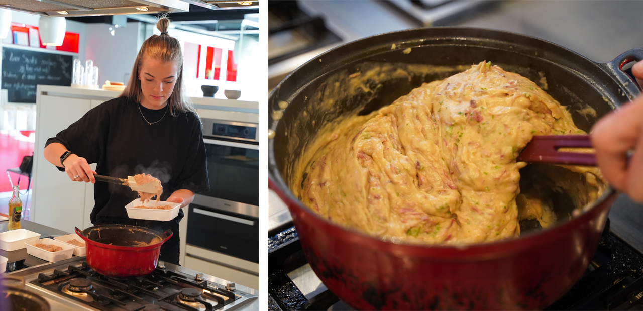 Een kroketje maken lijkt misschien simpel, maar dat is het zeker niet! Arn en zijn collega’s leggen uit dat de kroket niet in één dag gemaakt kan worden vanwege het opstijven van de ragout. Ook is er flink wat boter nodig om de bloem te garen. Dit werkt het beste met zo min mogelijk vocht in de roomboter. De kroket is helemaal op zijn best wanneer deze na het paneren ook nog een nachtje in de koelkast ligt. Zo leer je allemaal wetenswaardigheden over het maken van kroketten.