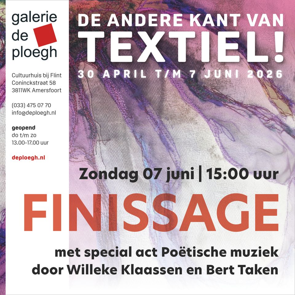 Op zondag 7 juni 15.00 uur Finissage met special act Poëtische muziek, door Willeke Klaassen en Bert Taken.