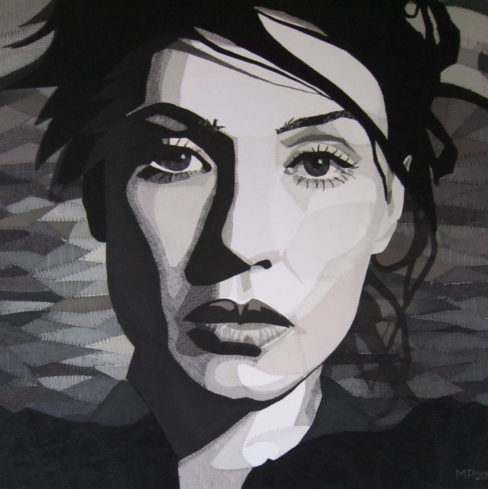 De achtergrond van Mary Poppelier als onder meer (plateel-)schilderes en modeontwerpster dragen bij aan de totstandkoming van haar schilderijen van textiel.