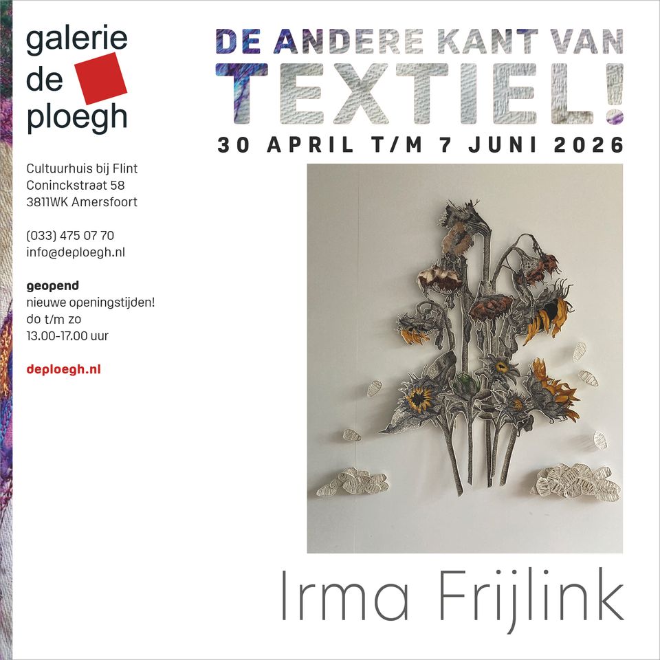 Op donderdag 21 mei 14.00 uur Lezing door Irma Frijlink: Vergankelijkheid. Al haar hele leven is Irma gefascineerd door kwetsbaarheid en vergankelijkheid. In haar werken is dit een terugkerend thema. Tijdens haar lezing voert zij je in vogelvlucht langs haar werken die vaak een maatschappijkritische toon hebben.