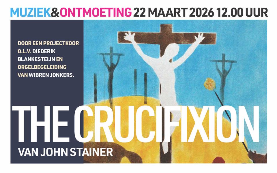 Tijdens het gratis lunchconcert wordt het oratorium 'The Crucifixion' van John Stainer uitgevoerd. Met zijn oratorium schreef de Engelse componist in 1887 een aangrijpende verklanking van het passieverhaal. Door solo's en koordelen wordt de luisteraar meegenomen in het lijden en sterven van Christus. Bezoekers kunnen ook meezingen in de monumentale koralen. In de Fonteinkerk wordt het werk uitgevoerd door een projectkoor onder leiding van Diederik Blankesteijn en orgelbegeleiding van Wibren Jonkers. Na het concert is er tijdens een eenvoudige lunch gelegenheid om nog wat na te praten.