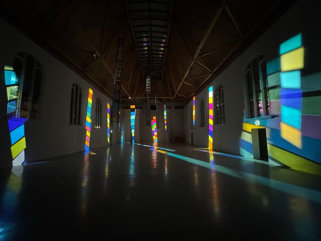 Beleef de kleurrijke installatie ECHO van Stephen Dean in het donker in de Elleboogkerk.