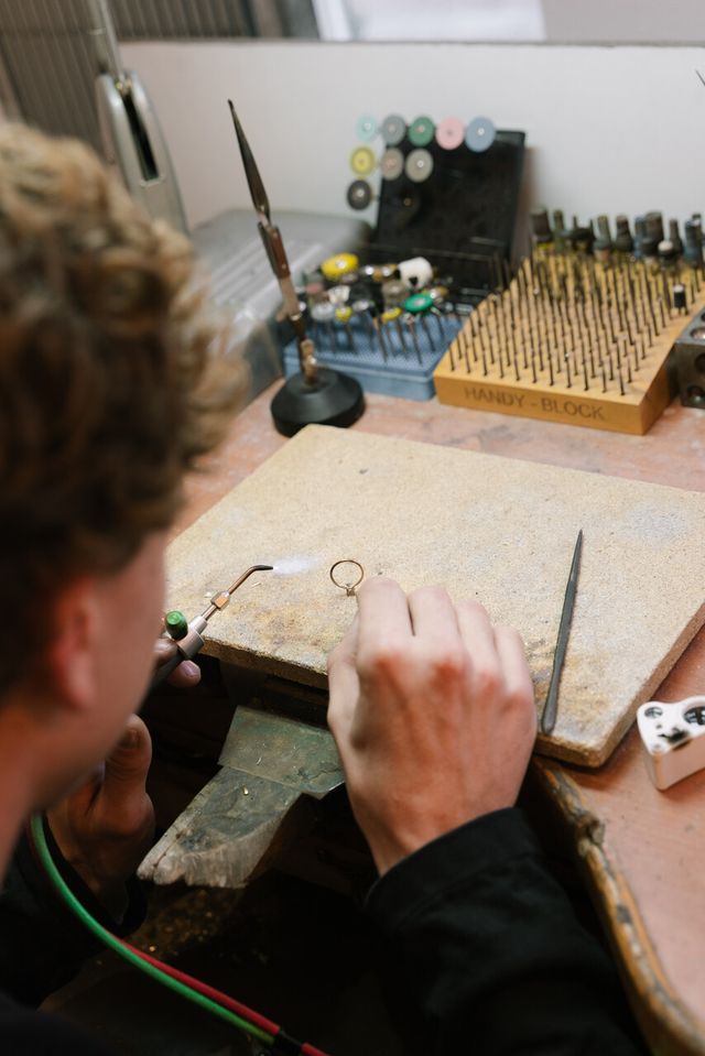 Ons atelier en winkel bevinden zich aan de Krommestraat 5 in het hart van Amersfoort, in het voormalige pand van Max van JewelsForever. We zetten zijn ambachtelijke traditie voort, maar geven er een frisse, eigentijdse draai aan — een nieuwe generatie goudsmeden, geworteld in hetzelfde vakmanschap.