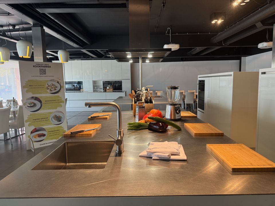 De sfeervolle kookstudio biedt plek aan groepen van acht tot 60 personen en is perfect voor bedrijven, families en vriendengroepen. Met zes kookeilanden en een ruime eetruimte is er alle ruimte om samen te koken én te genieten van het resultaat.