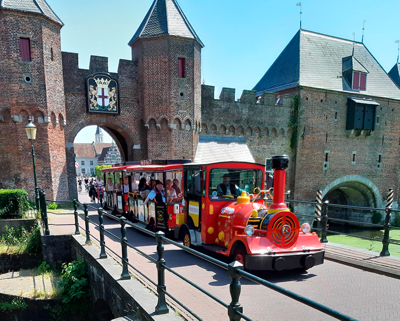De meeste bezienswaardigheden van historisch Amersfoort kom je tegen in deze rondrit van één uur. Tijdens de rit doen onze conducteurs live verslag van de objecten die we passeren. Wil je deze van dichtbij bekijken? Geen probleem de trein heeft een Hop Off Hop On systeem, met een dagkaart kun je de hele dag op en afstappen. Is het minder goed weer? Onze trein is overdekt dus je zit lekker droog.