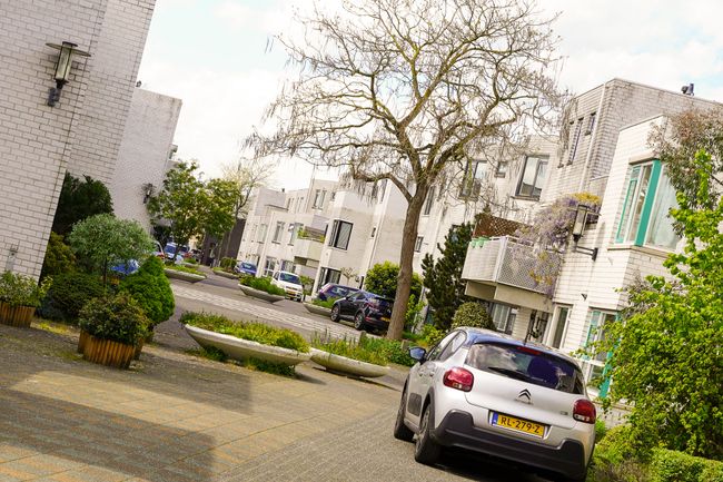 De woningen in deze buurt stralen een eigenzinnige charme uit. Met hun hoge voorgevels, lessenaarsdaken en lichte kleuren creëren ze een unieke sfeer. Achter de voorgevel gaan de woningen geleidelijk over in lagere bouwlagen, wat een speels contrast oplevert.