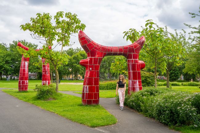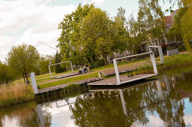 De Stadstuin in Amersfoort werd opgeleverd in 2006 en de ideeën van toen zijn nog steeds erg relevant. Dit park is klaar voor de toekomst: er is hier weinig beton, veel plekken voor wateropvang en het vele groen en de bomen zorgen voor verkoeling in de zomer. Ook niet te missen: op alle daken zijn er zonnepanelen aangelegd.