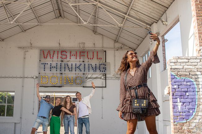 Lichtkunstwerk bij de ingang van de oude Prodentfabriek in Amersfoort.
