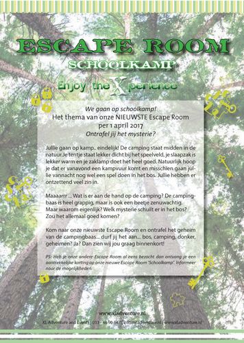 Voor kinderen vanaf 9 jaar is deze nieuwe escape room wederom spannend en uitdagend! Het thema van deze kamer is 'Schoolkamp"