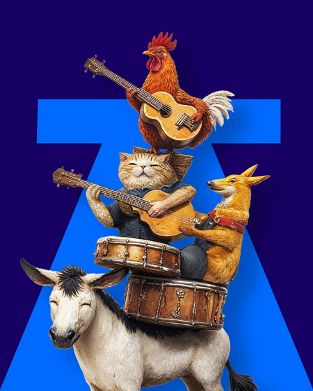 Bremer Straatmuzikanten (6+)Vier dieren vormen gezamenlijk een bont gezelschap.